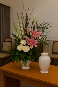 Offrez un dernier hommage empreint d’élégance avec nos arrangements floraux pour urne funéraire, créés avec soin par nos fleuristes professionnels à Sherbrooke. Chaque composition allie beauté, respect et délicatesse, pour accompagner dignement la mémoire d’un être cher. Livraison rapide et soignée dans la région de Sherbrooke.