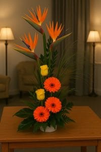 Grâce à sa floraison durable et à son feuillage luxuriant, cet arrangement est parfait pour la maison, le bureau ou comme cadeau attentionné. Facile d’entretien, il constitue un choix durable pour ceux qui souhaitent une décoration naturelle et raffinée.